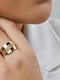 Anel Duplo Chapa Lisa Com Bolinhas em Ouro 18k – Sofisticação e Charme