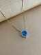 Gargantilha Coração Pedra Azul com Zircônias 45cm Prata 925